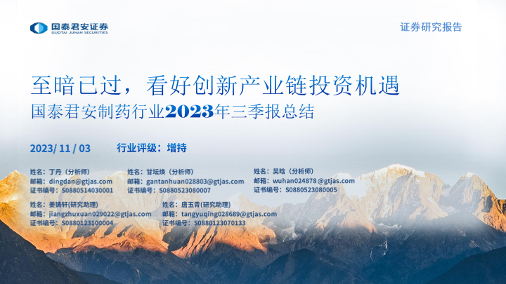 【国泰君安证券】【20231103】制药行业2023年三季报总结:至暗已过,看好创新产业链投资机遇-32页