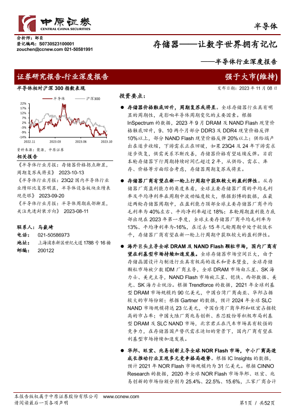 【中原证券】【20231108】半导体行业深度报告:存储器,让数字世界拥有记忆-52页