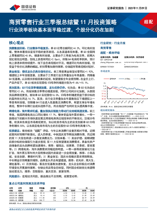 【国信证券】【20231109】商贸零售行业三季报总结暨11月投资策略:行业淡季板块基本面平稳过渡,个股分化仍在加剧-22页