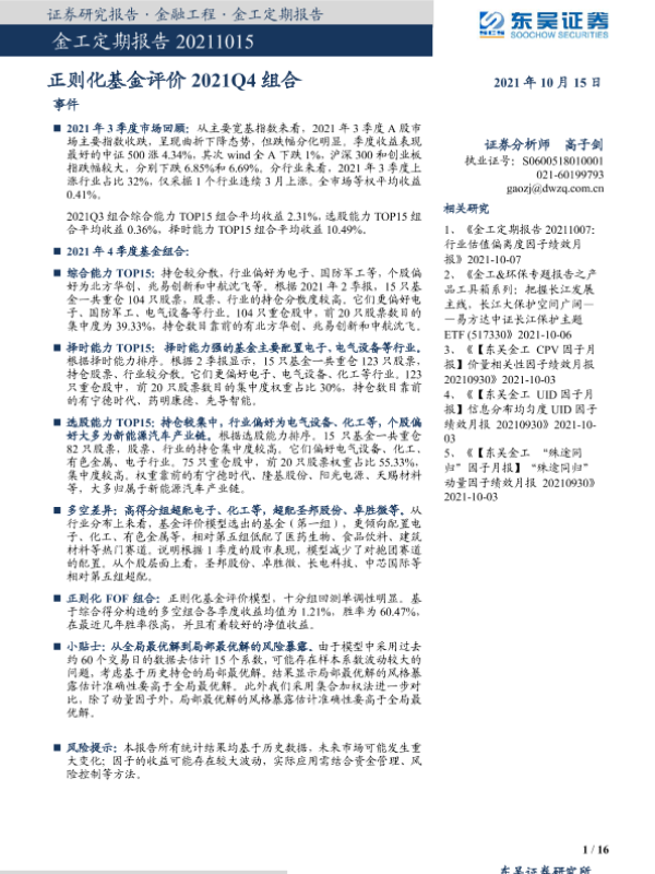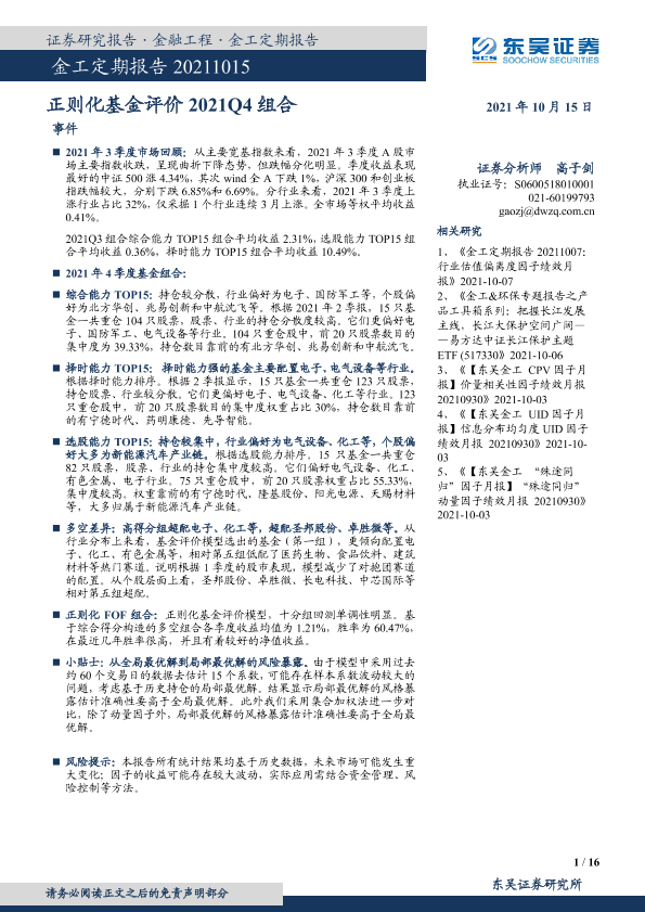 【东吴证券】【20211015】金工定期报告:正则化基金评价2021Q4组合-16页