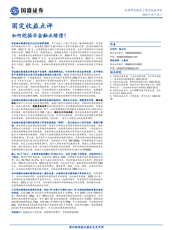 【国盛证券】【20231025】固定收益点评:如何挖掘非金融永续债?-18页