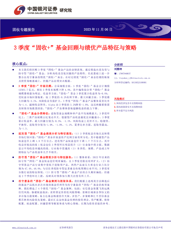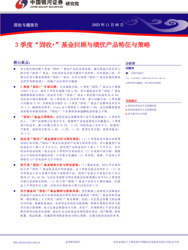 【银河证券】【20231106】3季度“固收+”基金回顾与绩优产品特征与策略-22页