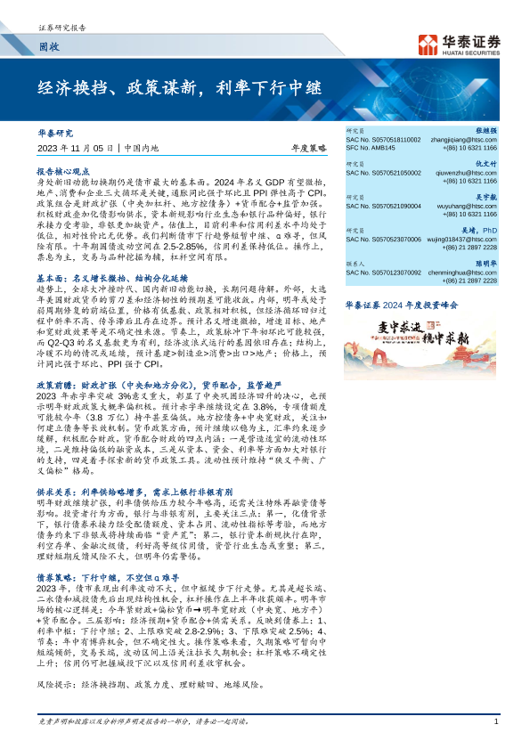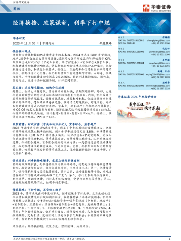 【华泰证券】【20231105】固收年度策略:经济换挡、政策谋新,利率下行中继-45页