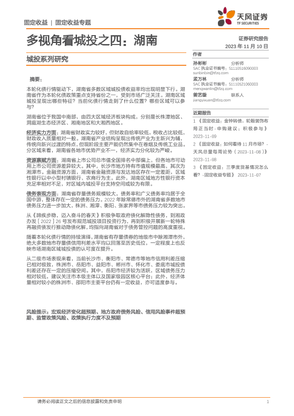 【天风证券】【20231110】多视角看城投之四:湖南-24页