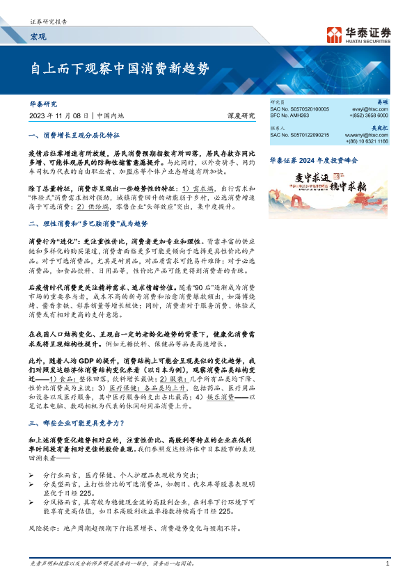 【华泰证券】【20231108】自上而下观察中国消费新趋势-22页