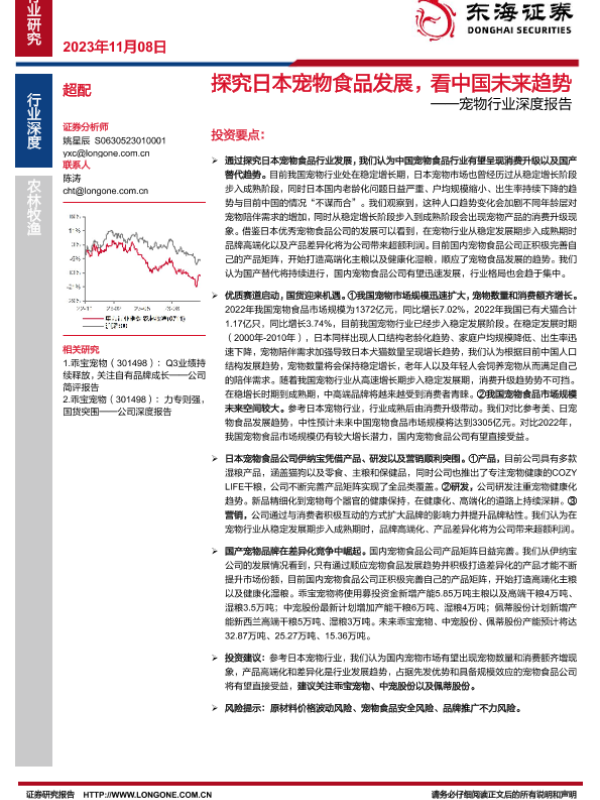 【东海证券】【20231108】探究日本宠物食品发展,看中国未来趋势-23页