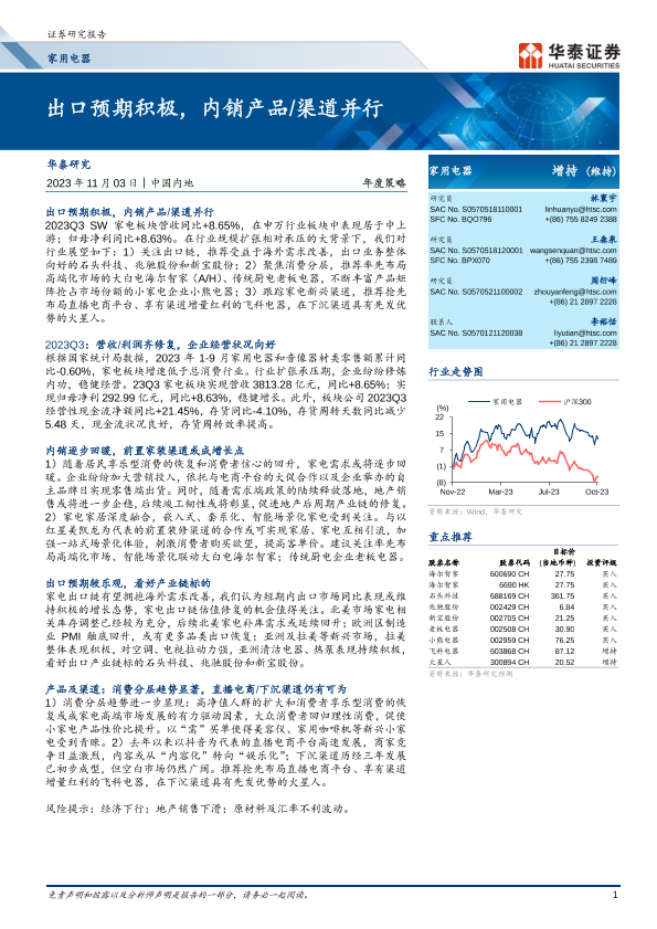 【华泰证券】【20231103】家用电器行业年度策略:出口预期积极,内销产品渠道并行-53页