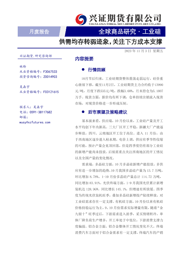 【兴证期货】【20231103】工业硅月度报告:供需均存转弱迹象,关注下方成本支撑-21页