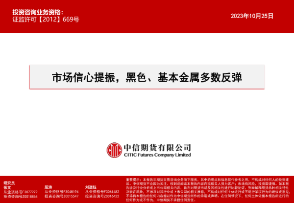 【中信期货】【20231025】市场信心提振,黑色、基本金属多数反弹-15页