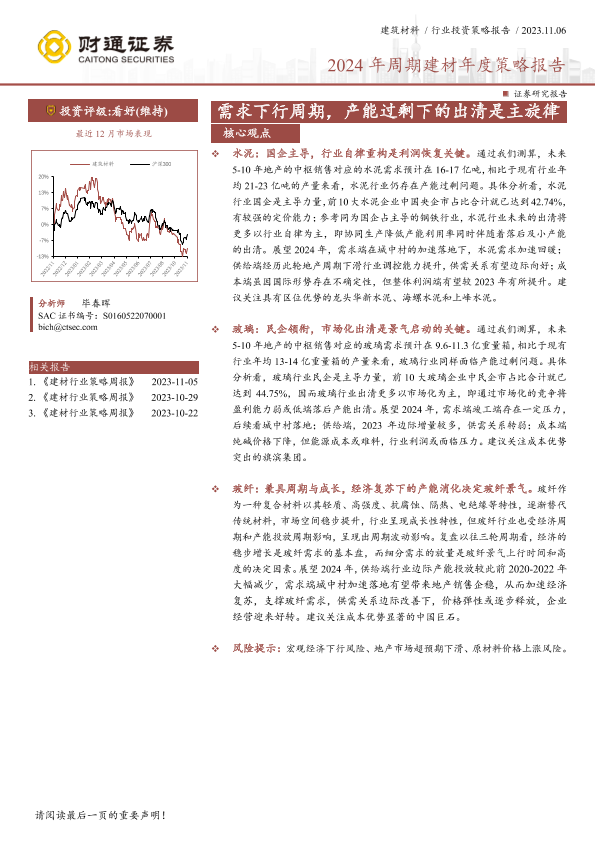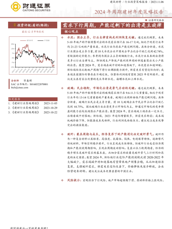【财通证券】【20231106】建筑材料行业2024年周期建材年度策略报告:需求下行周期,产能过剩下的出清是主旋律-26页