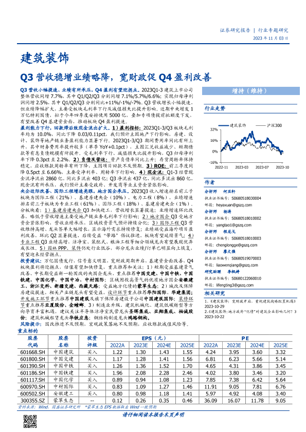 【国盛证券】【20231103】建筑装饰行业:Q3营收稳增业绩略降,宽财政促Q4盈利改善-63页