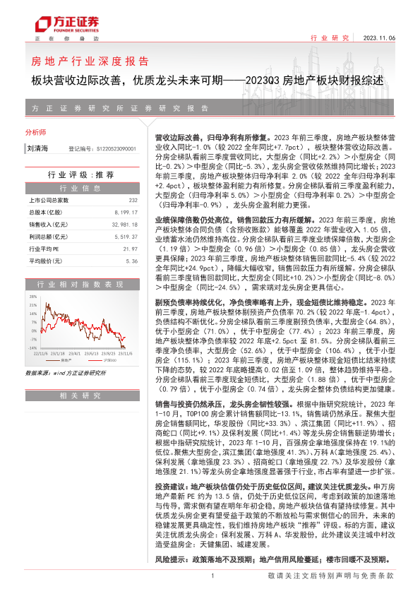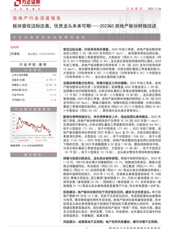 【方正证券】【20231106】房地产行业深度报告:2023Q3房地产板块财报综述,板块营收边际改善,优质龙头未来可期-20页