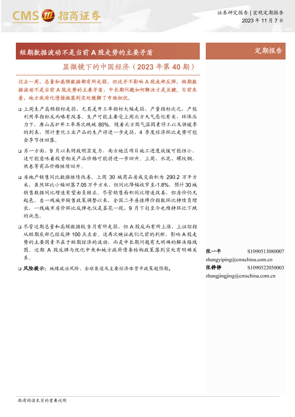 【海通证券】【20231107】显微镜下的中国经济(2023年第40期):短期数据波动不是当前A股走势的主要矛盾-39页