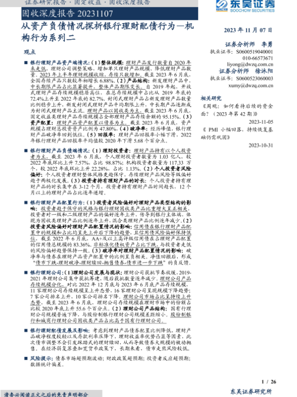 【东吴证券】【20231107】从资产负债情况探析银行理财配债行为——机构行为系列二-26页