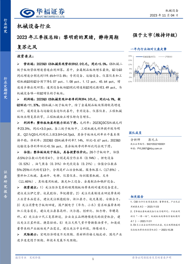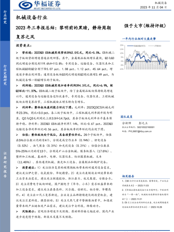 【华福证券】【20231104】机械设备行业2023年三季报总结:黎明前的黑暗,静待周期复苏之风-28页