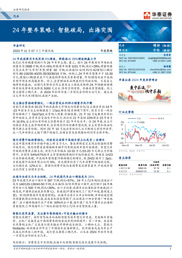 【华泰证券】【20231107】汽车行业年度策略:24年整车策略,智能破局,出海突围-35页