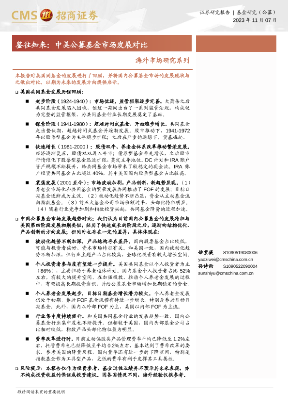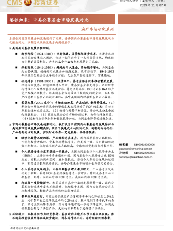 【海通证券】【20231107】海外市场研究系列:鉴往知来,中美公募基金市场发展对比-24页