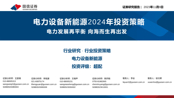 【国信证券】【20231109】电力设备新能源行业2024年投资策略:电力发展再平衡,向海而生再出发-41页