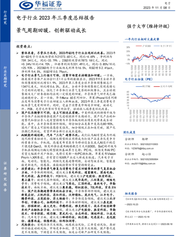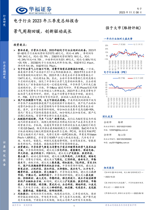 【华福证券】【20231108】电子行业23Q3总结报告:景气周期回暖,创新驱动成长-48页