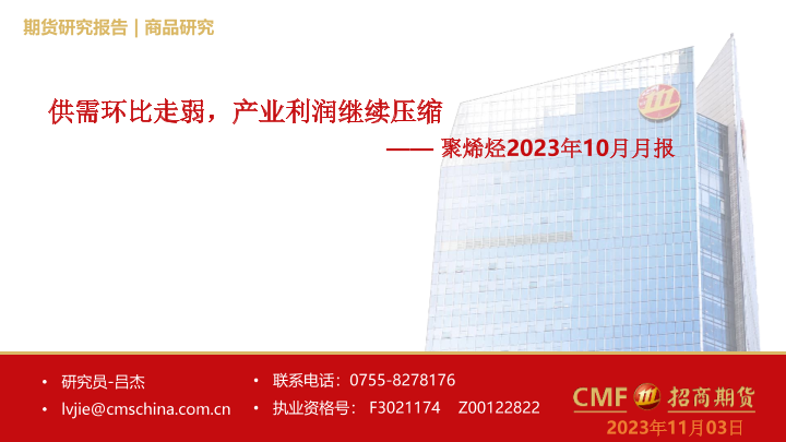 【招商期货】【20231103】聚烯烃2023年10月月报:供需环比走弱,产业利润继续压缩-30页