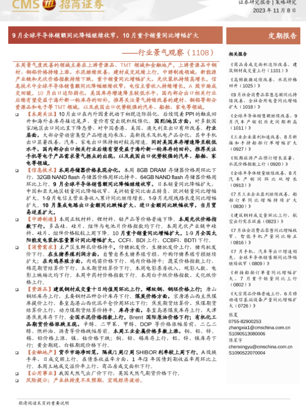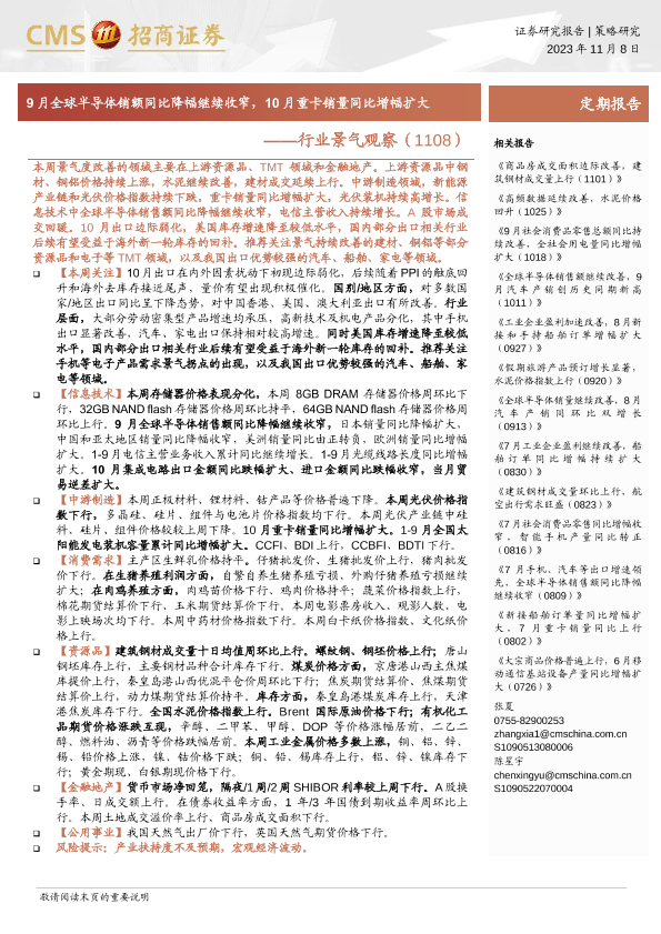 【海通证券】【20231108】行业景气观察:9月全球半导体销额同比降幅继续收窄,10月重卡销量同比增幅扩大-29页