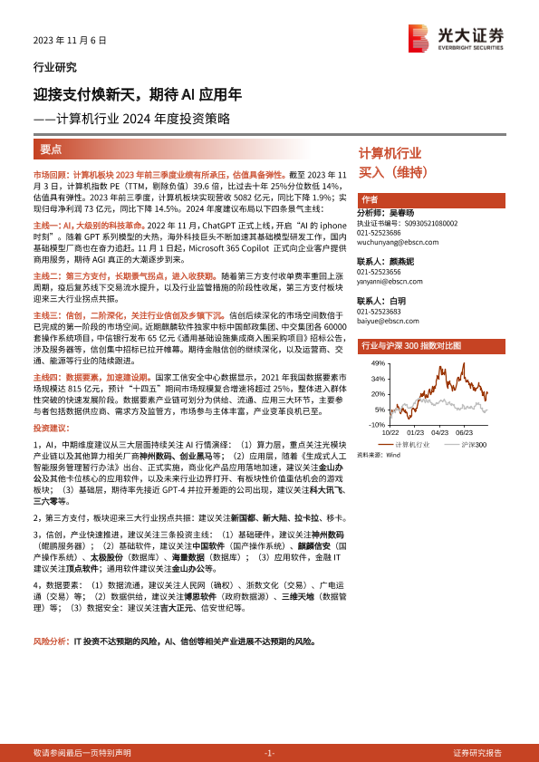 【光大证券】【20231106】计算机行业2024年度投资策略:迎接支付焕新天,期待AI应用年-50页
