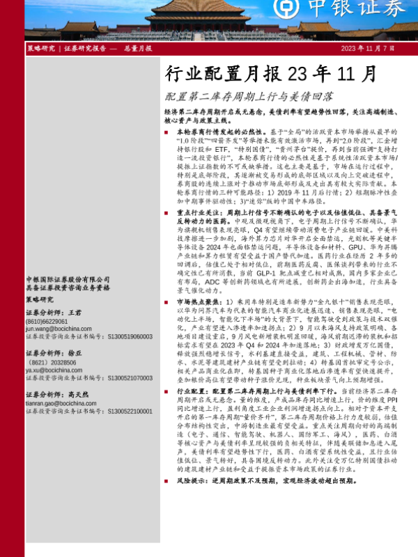 【中银证券】【20231107】行业配置月报23年11月:配置第二库存周期上行与美债回落-40页