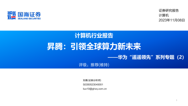 【国海证券】【20231108】计算机行业报告华为“遥遥领先”系列专题(2):昇腾,引领全球算力新未来-44页
