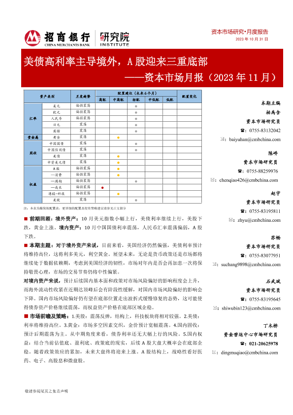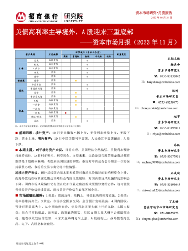 【招商银行】【20231031】资本市场月报(2023年11月):美债高利率主导境外,A股迎来三重底部-24页