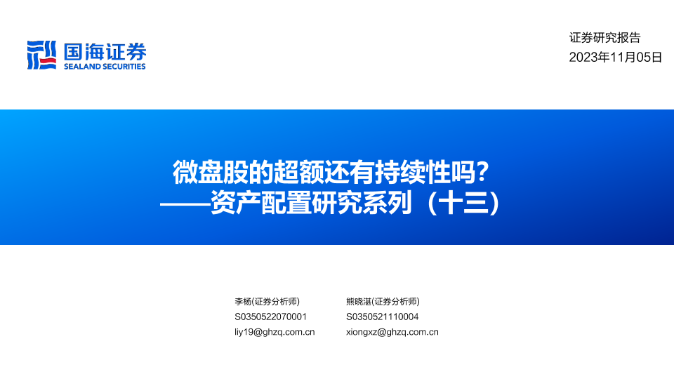 【国海证券】【20231105】资产配置研究系列(十三):微盘股的超额还有持续性吗?-34页