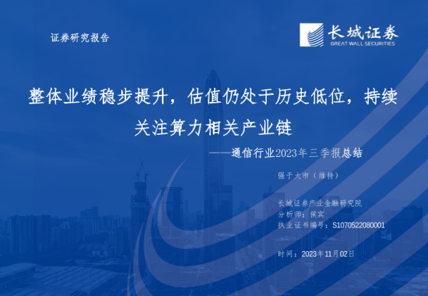 【长城证券】【20231102】通信行业2023年三季报总结:整体业绩稳步提升,估值仍处于历史低位,持续关注算力相关产业链-47页