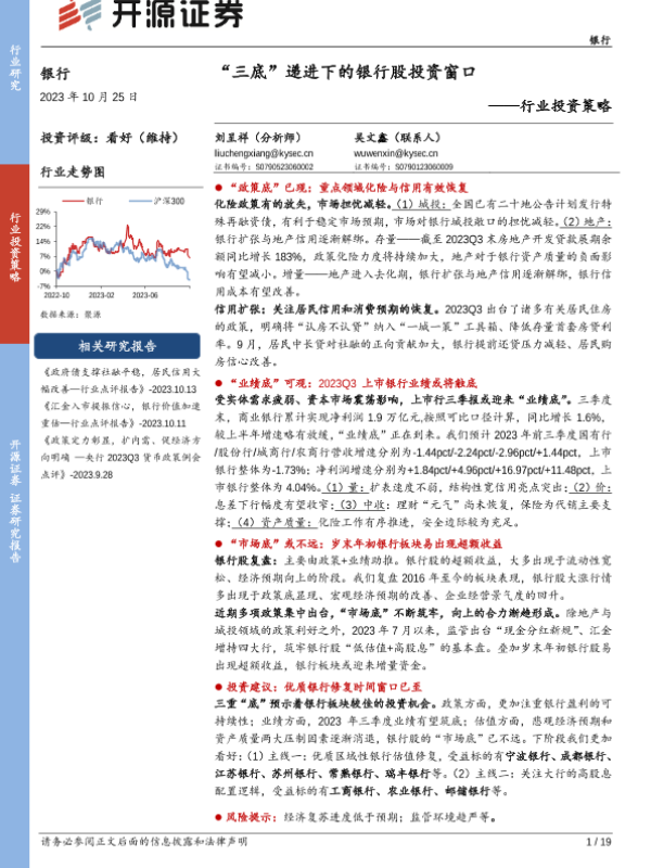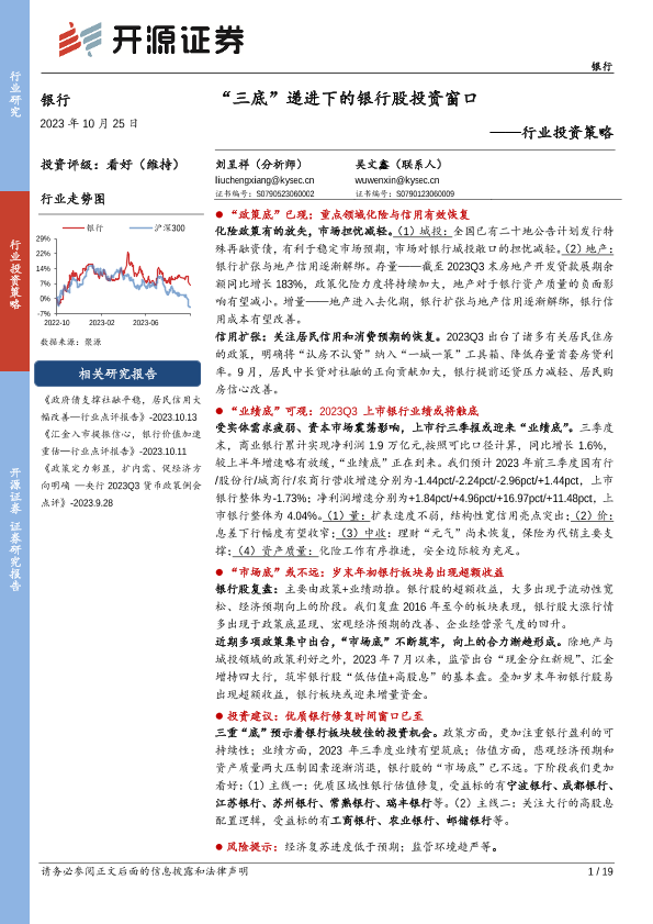 【开源证券】【20231025】银行业投资策略:“三底”递进下的银行股投资窗口-19页