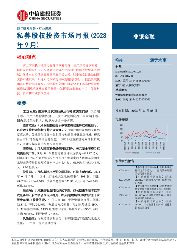 【中信建投证券】【20231105】非银金融行业:私募股权投资市场月报(2023年9月)-20页