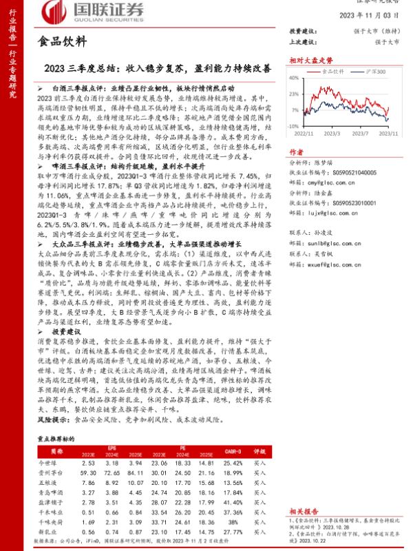 【国联证券】【20231103】食品饮料行业2023三季度总结:收入稳步复苏,盈利能力持续改善-41页