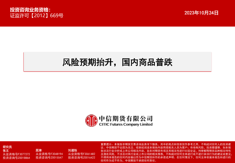 【中信期货】【20231024】风险预期抬升,国内商品普跌-15页