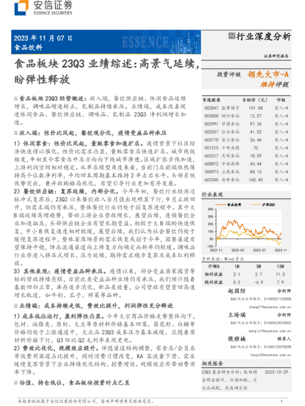 【安信证券】【20231107】食品饮料行业食品板块23Q3业绩综述:高景气延续,盼弹性释放-22页