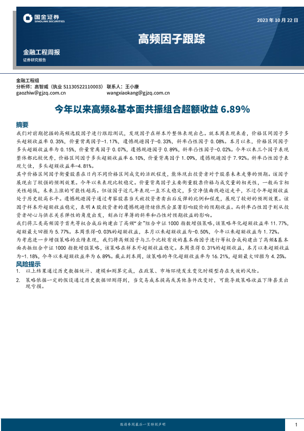【国金证券】【20231022】高频因子跟踪:今年以来高频&基本面共振组合超额收益6.89%-17页