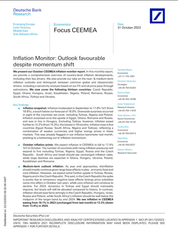 【Deutsche Bank Research】【20231031】Bank-Focus CEEMEA Inflation Monitor Outlook favourable despite momentum shift-64页