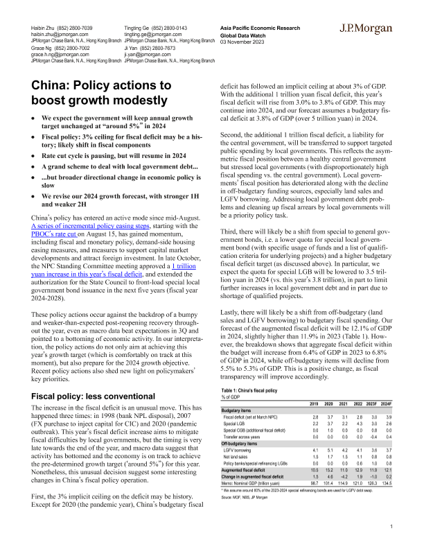 【J.P. Morgan】【20231103】中国政策行动以适度促进增长-9页