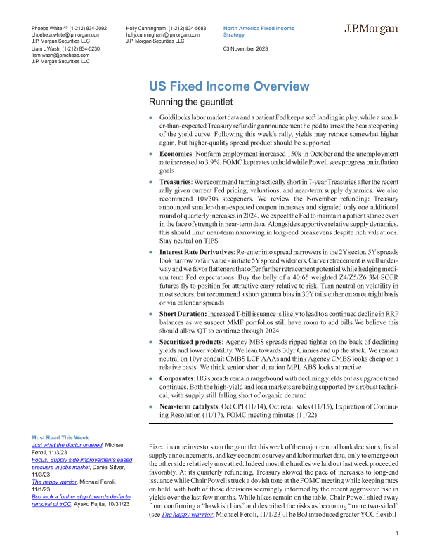 【J.P. Morgan】【20231103】JPMorgan Econ FI-US Fixed Income Overview Running the gauntlet-11页