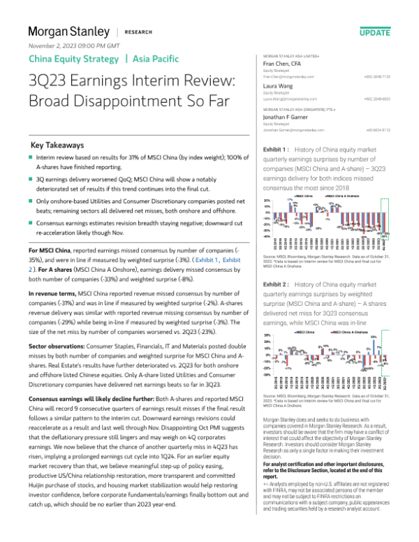 【Morgan Stanley】【20231031】中国股市策略 | 亚太地区 2023年第三季度收益临时审查:总体表现令人失望-24页