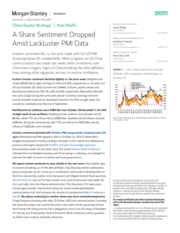 【Morgan Stanley】【20231101】China Equity Strategy A-Share Sentiment Dropped Amid Lackluster PMI Data-11页