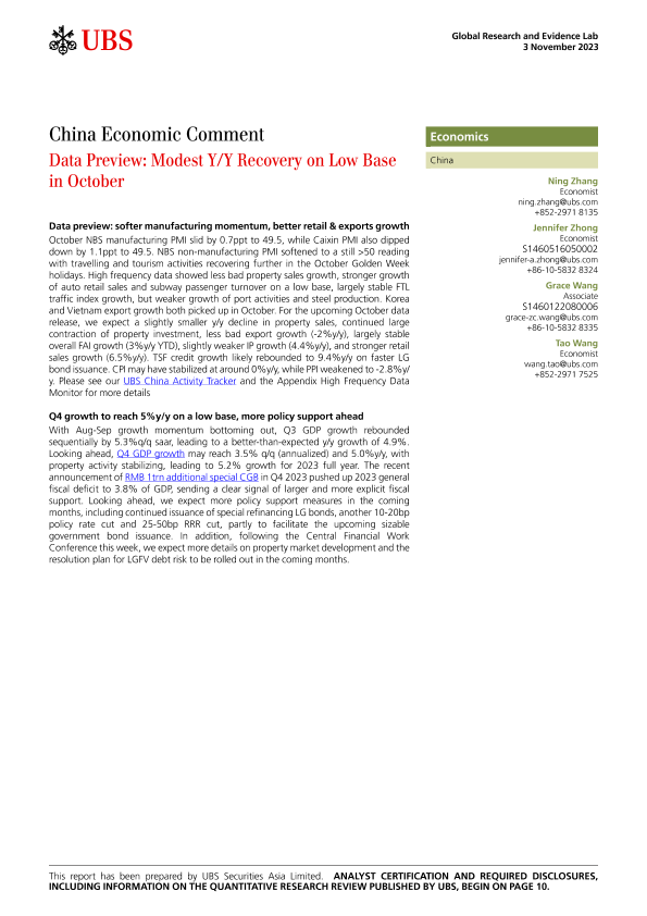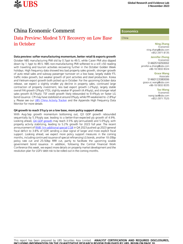 【UBS Securities Asia Limited】【20231103】Data Preview Modest Y/Y Recovery on Low Base in October-13页