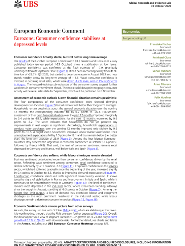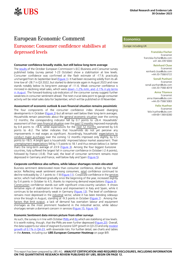【UBS AG】【20231030】Eurozone Consumer confidence stabilises at depressed levels-15页