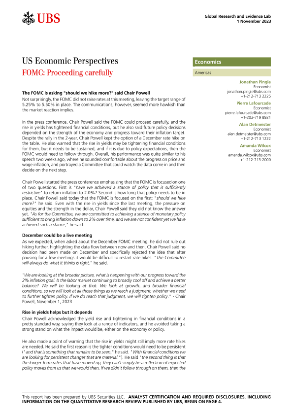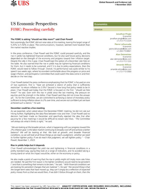 【UBS Securities LLC】【20231101】US Economic Perspectives FOMC Proceeding carefully-7页