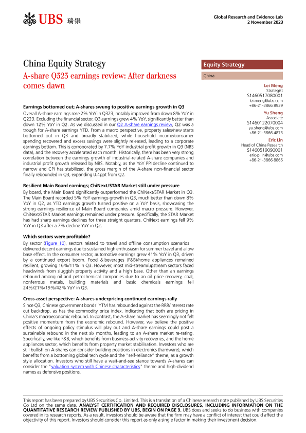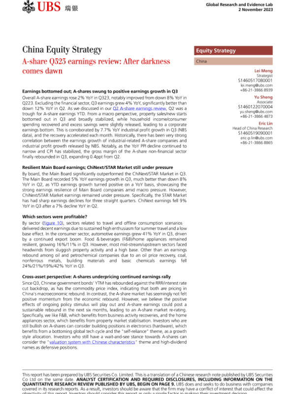 【UBS Securities Co. Limited】【20231102】A-share Q323 earnings review After darkness comes dawn-13页