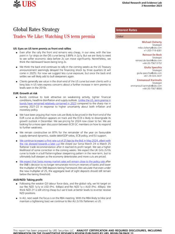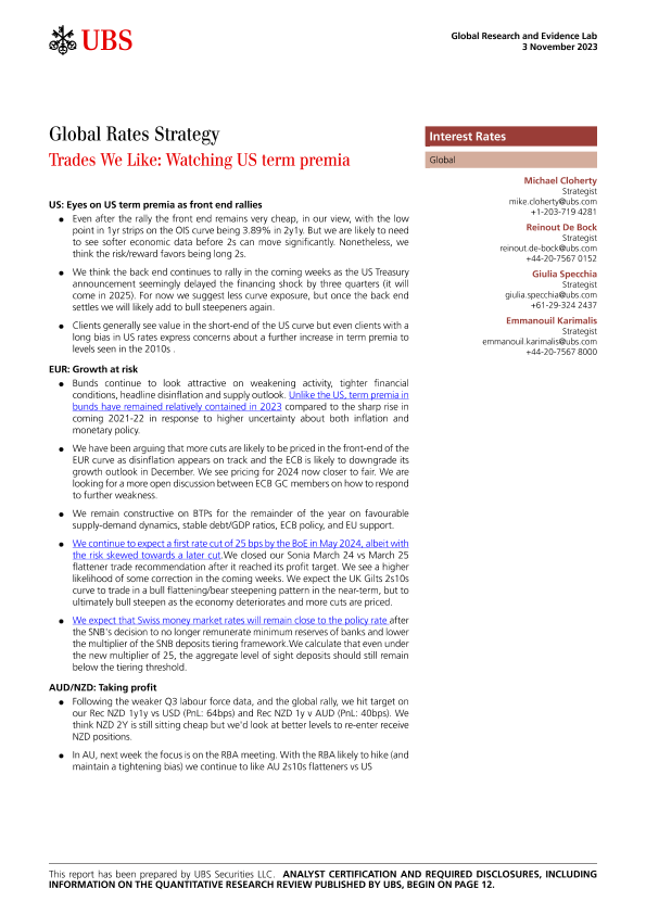 【UBS Securities LLC】【20231103】Global Rates Strategy _Trades We Like Watching US term premia-16页