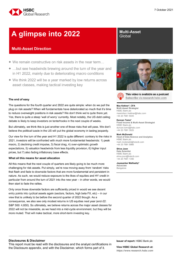 【HSBC Bank plc】【20211007】HSBC-全球投资策略-展望2022年:多资产方向-38页