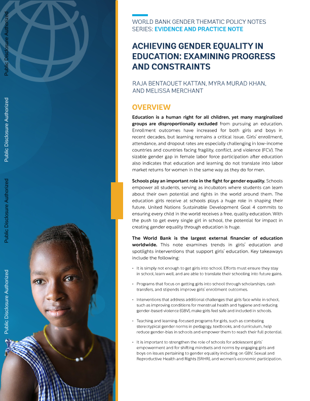 【世界银行】【20231001】实现教育中的性别平等:考察进展和制约因素-36页