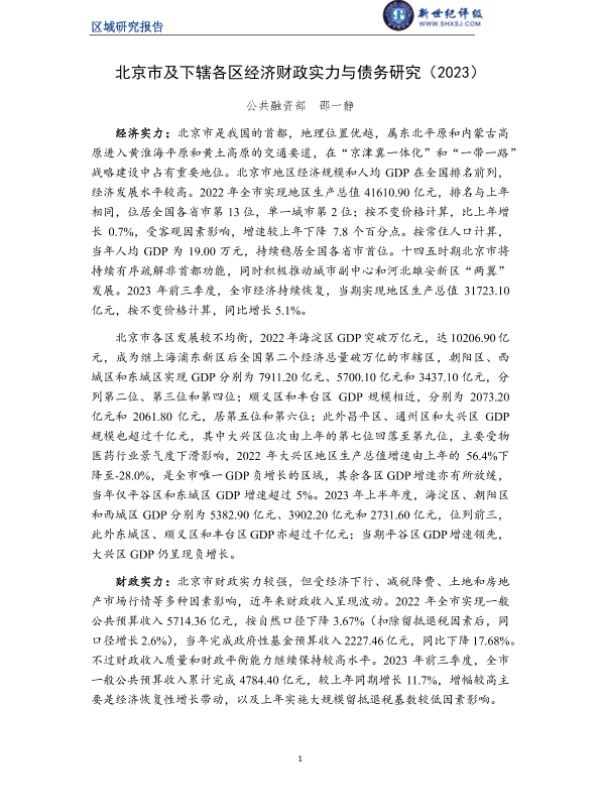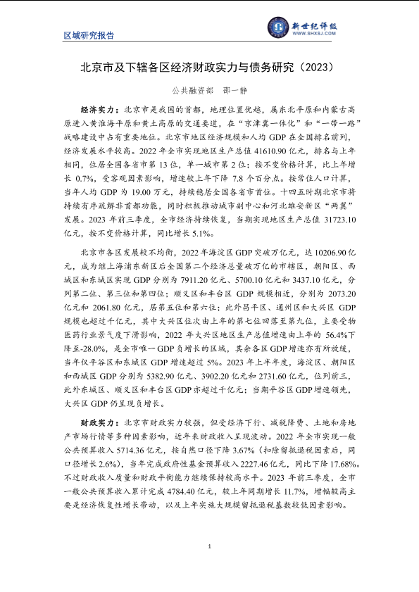 【新世纪评级】【20230101】北京市及下辖各区经济财政实力与债务研究(2023)-27页